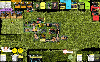 - Roguelite campaign: DiaD is built to be played over several sessions. In order to have a shot at defeating the evil that lurks within the dungeon, players will have to first complete smaller Village Quests to build up their Village, collect Loot, Train, and add Gear and special Heroic Actions to their decks.